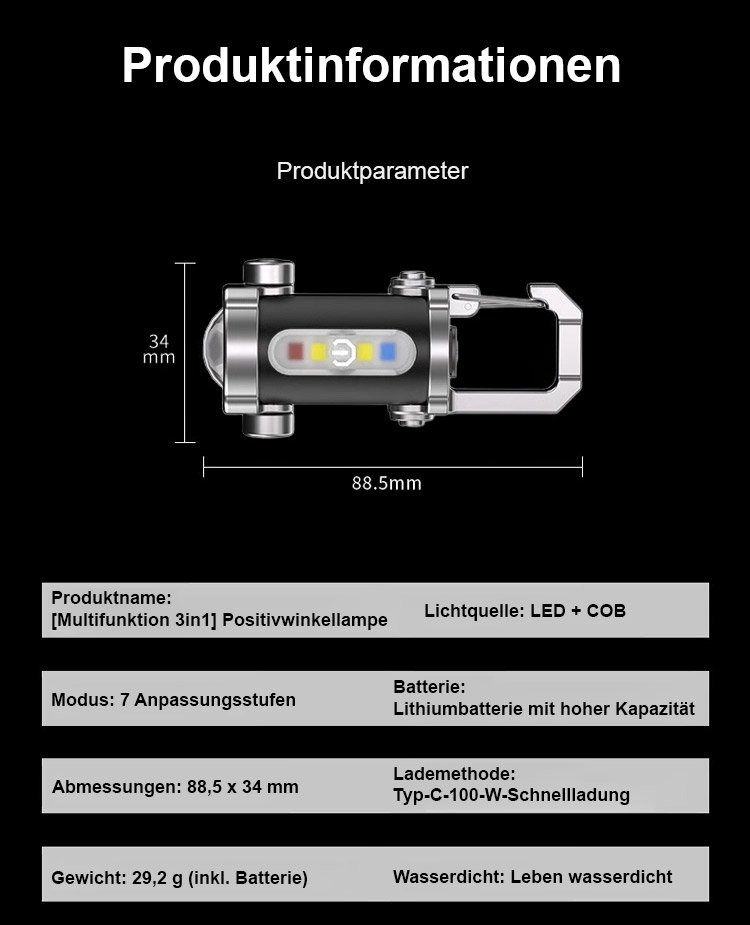 【3-in-1 Multifunktionsgerät】SOS Notfalllampe, Taschenlampe & Powerbank