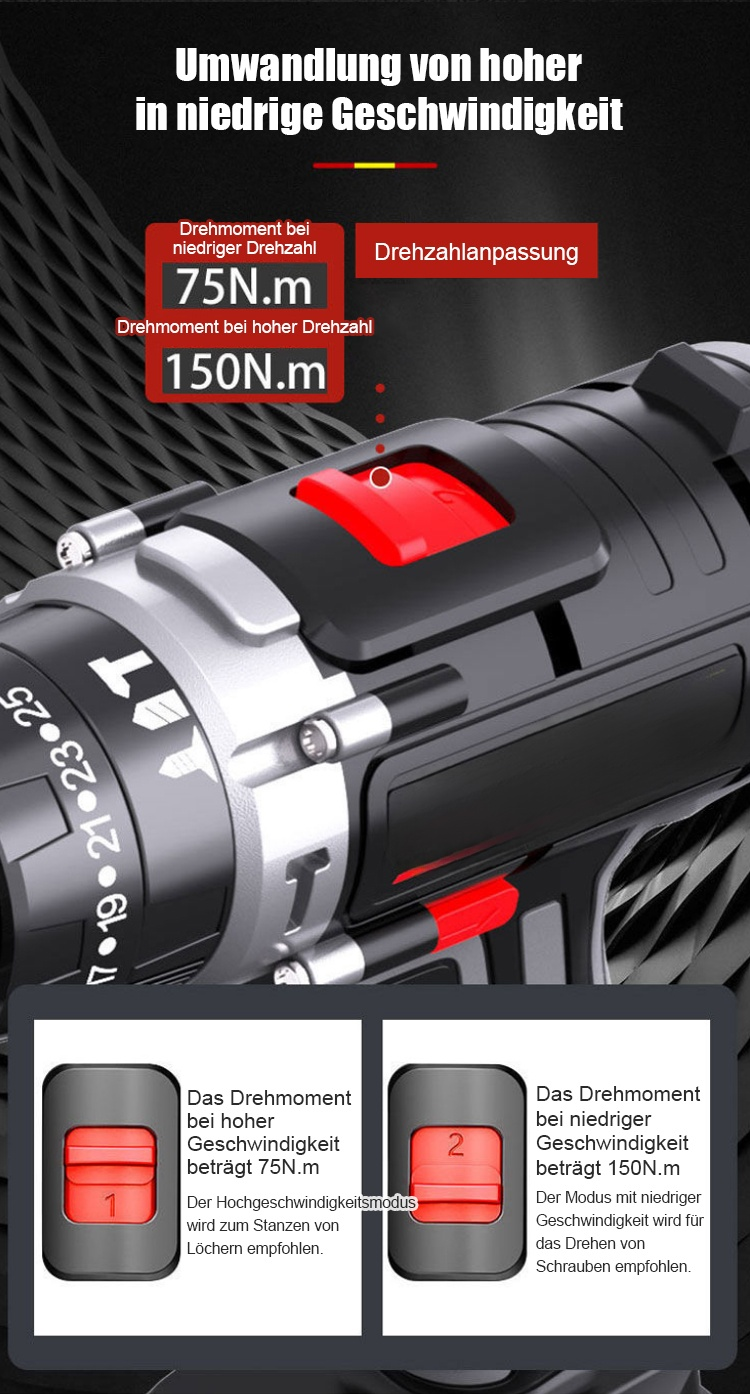 Deutsche Zweigang-Schlagbohrmaschine mit hohem Drehmoment✨️Kraftvoller bürstenloser – 3-in-1 Multifunktions-Werkzeug 🚀