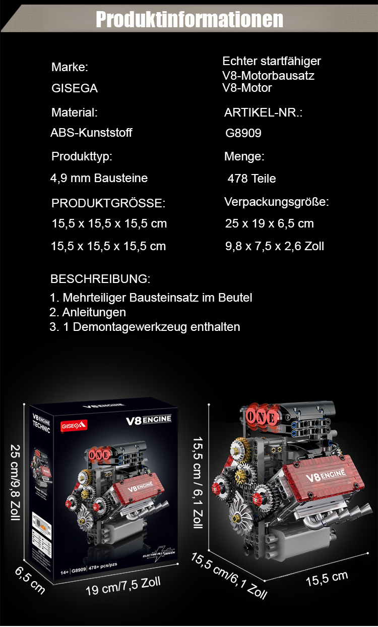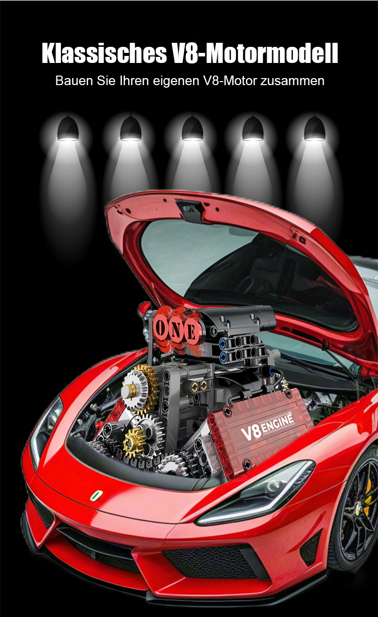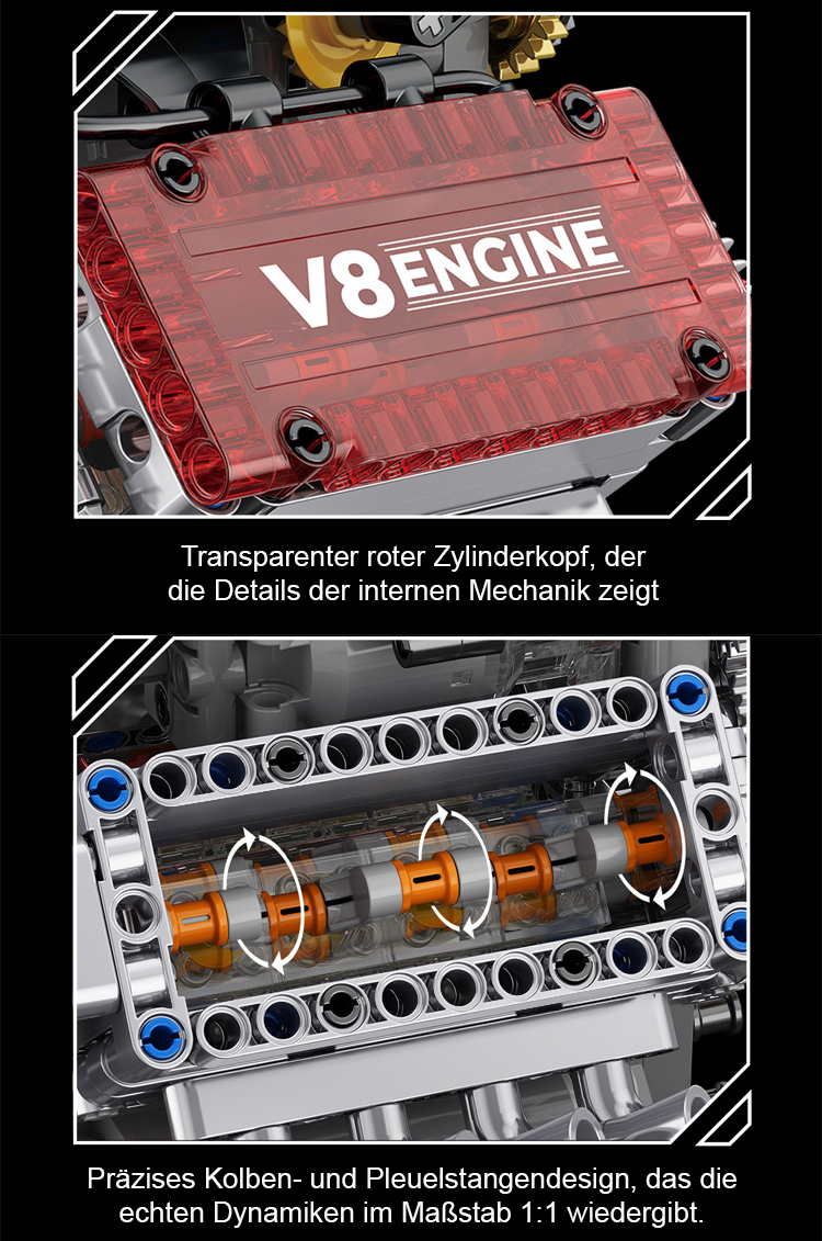 【Echtstartfähiges】Maschinentechnologie-V8-Motorantriebsgruppe ✨️1:16 Maßstab, 8 Zylinder & CNC Präzision – Nicht nur Modell, sondern echter laufender Motor🎇