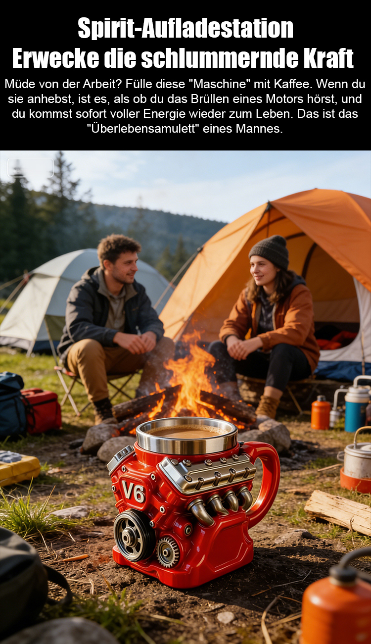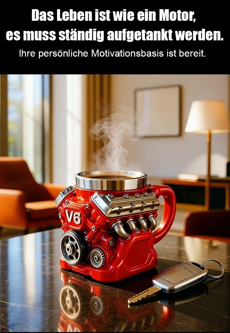 ✨️Gießt man heißes Wasser ein💥wird der Becher warm – wie ein startender Motor – und vermittelt in der Handfläche das Gefühl eines „mechanischen Herzschlags“ 👍️das die industrielle Ästhetik echter Motoren lebendig werden lässt.💯