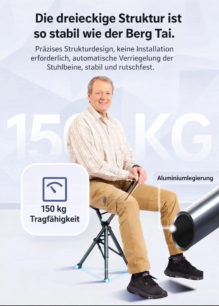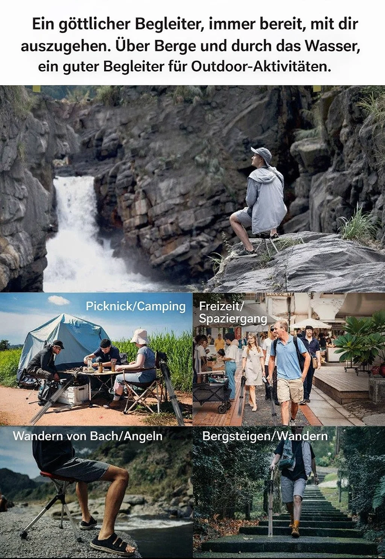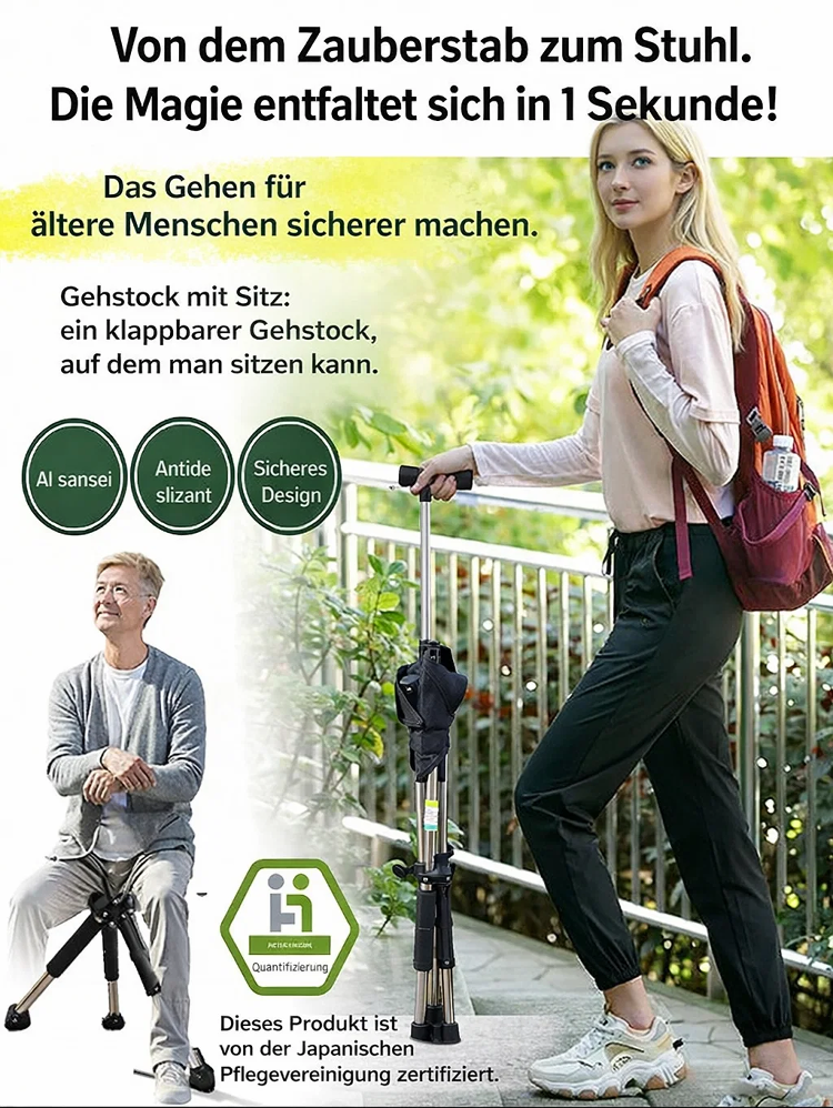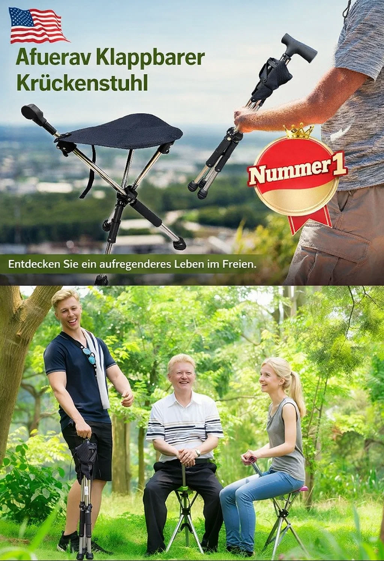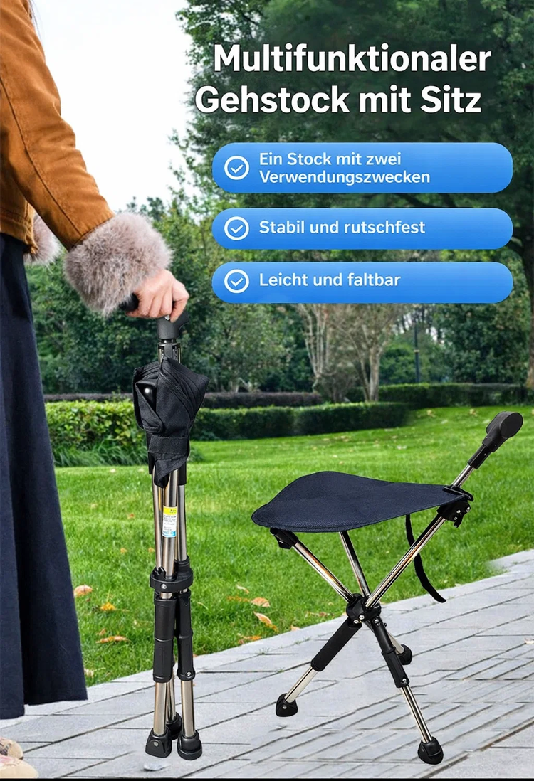 🌐Nie wieder stehen müssen: Sekundenschnell vom stabilen Spazierstock zum bequemen Sitzplatz entfaltet💯