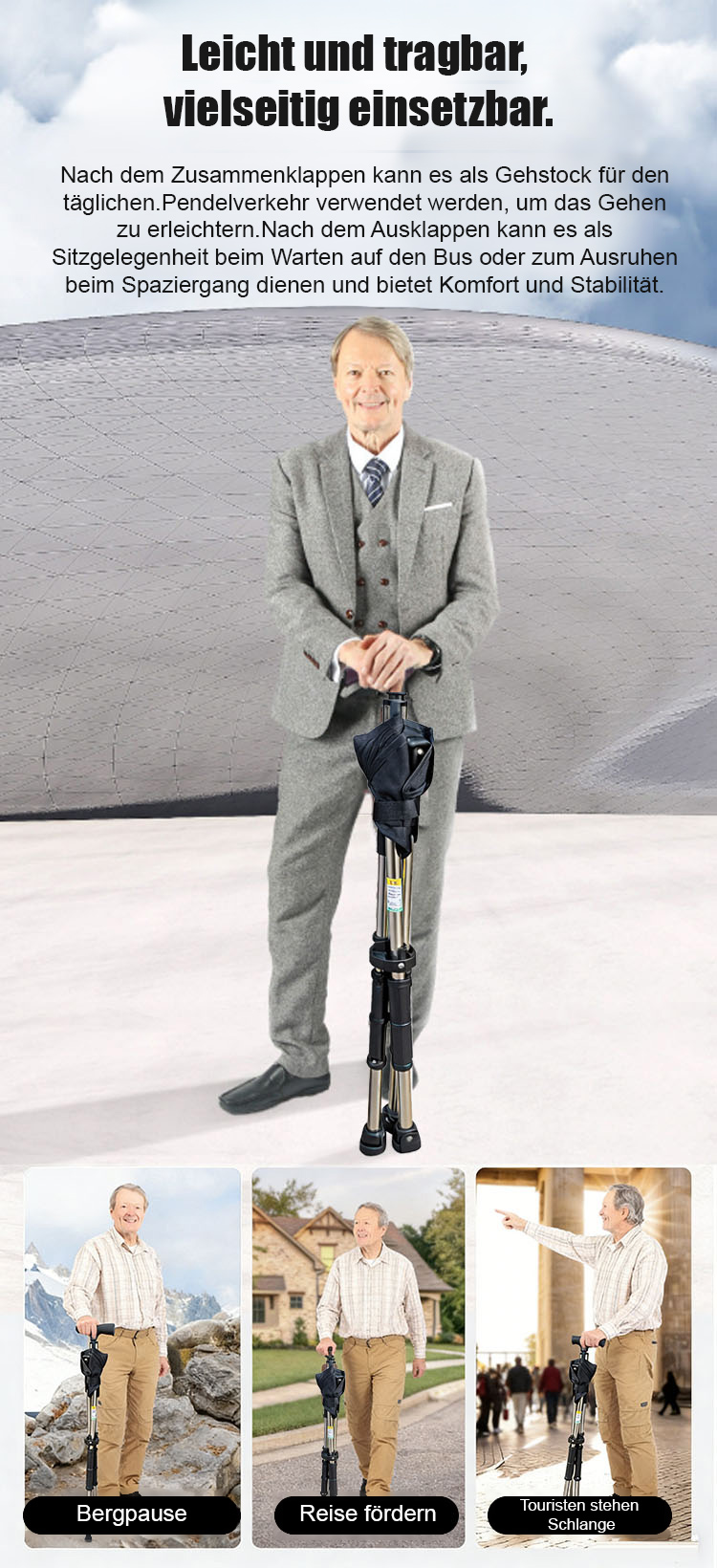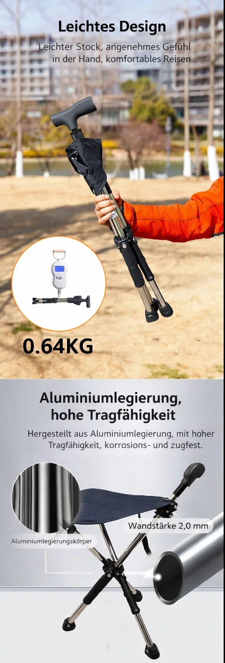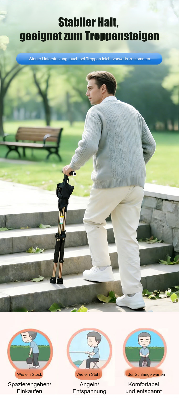 🌐Nie wieder stehen müssen: Sekundenschnell vom stabilen Spazierstock zum bequemen Sitzplatz entfaltet💯